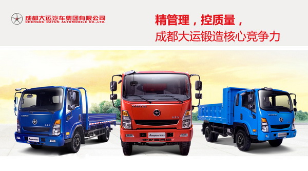 作为一家集产、销、研于一体的整车企业,成都大运拥有全系列商用车生产资质,产品涵盖各类 轻、中、重型公路运输汽车、工程自卸车、低速汽车、专用车、挂车、客车等450多个品种。具备年产10万辆中、轻卡能力。