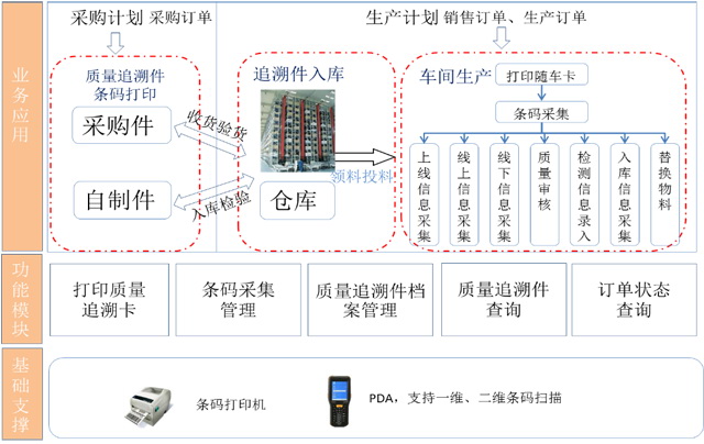 基于全面质量管理思路,建立整车质量追溯件的生产批次和身份识别的质量追溯系统。从供应商、原料、生产制造到售后服务的整个产品生命周期的质量记录和分析,有效防止不良品的流动,降低不良品率。