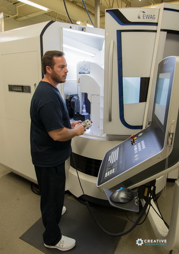 Shape-Master 的另一台 LASER LINE ULTRA 激光磨床的料垛系统可调整托盘的高度,使承载能力翻倍。当加工较短或较低的工件时,8 个托盘向上运动,配合料垛系统,每个托盘可承载多达 300 件工件。EWAG LASER LINE ULTRA 激光磨床的灵活、自动化的特点,正是 Shape-Master 决定采用的主要因素。 “我们一直在使用 EWAG 的磨削机器”,Shape-Master Tool 公司的应用经理 Dan Chambers 如是说。“我们首先引入了 EWAG 的手动机器,随后在 90 年代添加了 EWAMATIC LINE 数控磨床,并且沿用至今”。