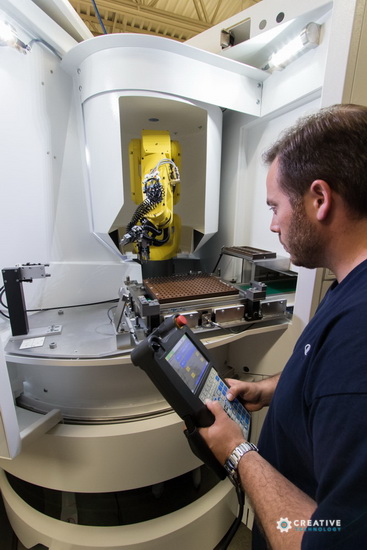 Shape-Master 的两台 LASER LINE ULTRA 激光磨床均装备了自动化技术。其中一台集成了 6 轴 FANUC 机器人、二合一的 HSK 63 型刀架和托盘。所有装备均可在无光线环境下不间断地进行回转刀具的全自动生产。该机器还可使可转位钻石切削刀片的大批量生产实现自动化。